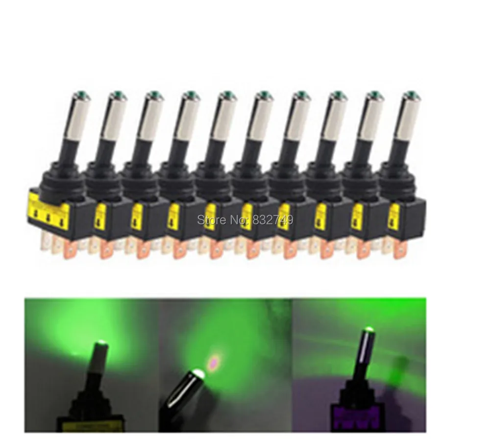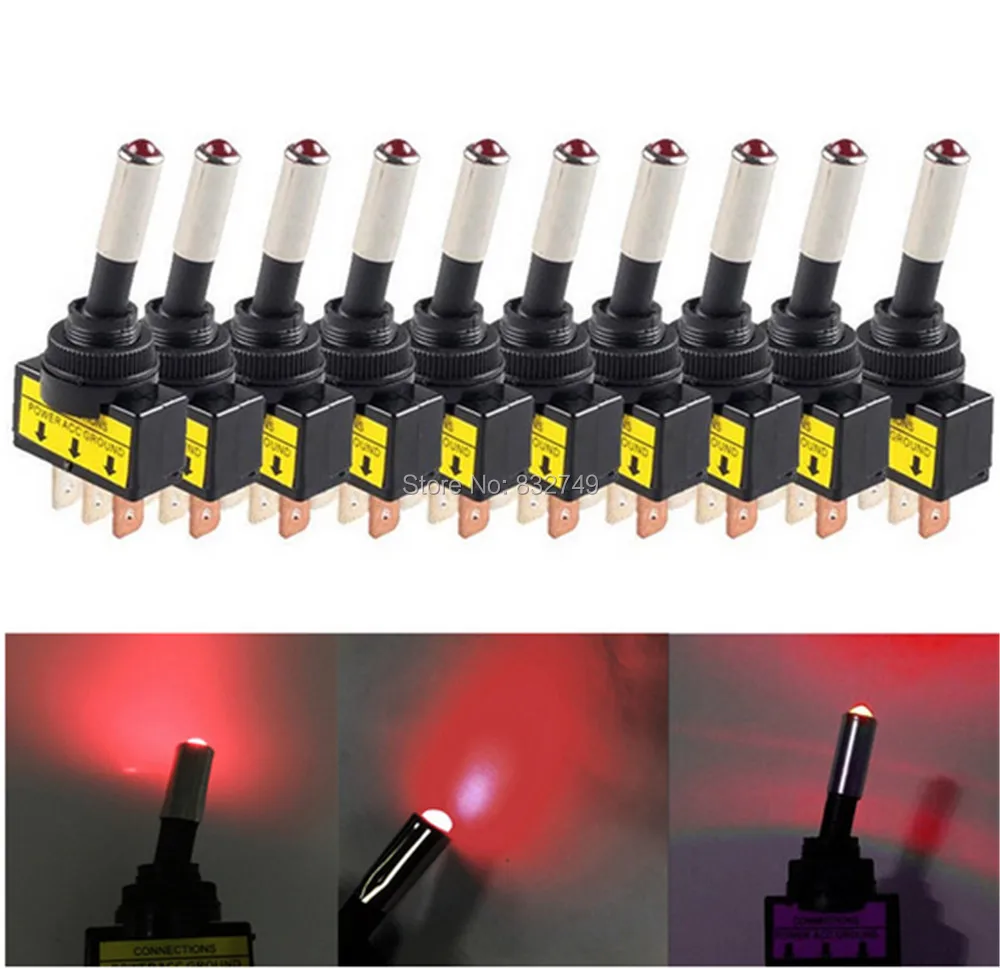 TOP 10 PCS 12V 20A Car Auto Red Blue Yellow Green Color LED Light Toggle Rocker Switch 3 Pin SPST ON/OF