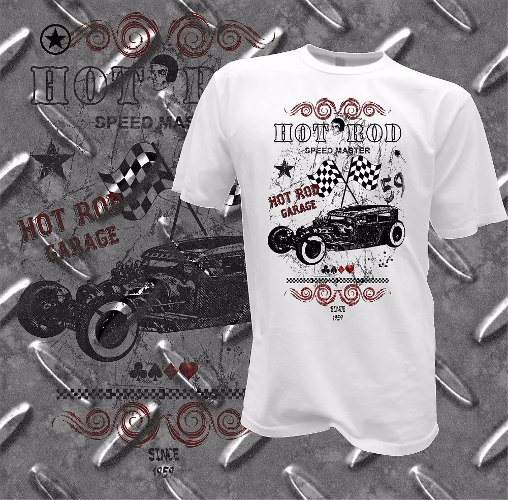 HIGH QUALITY 2019 New Brand Sales Men High Quality T shirt Hot Rod Us Custom 50S Car Usa Route 66 Auto Car Pinup