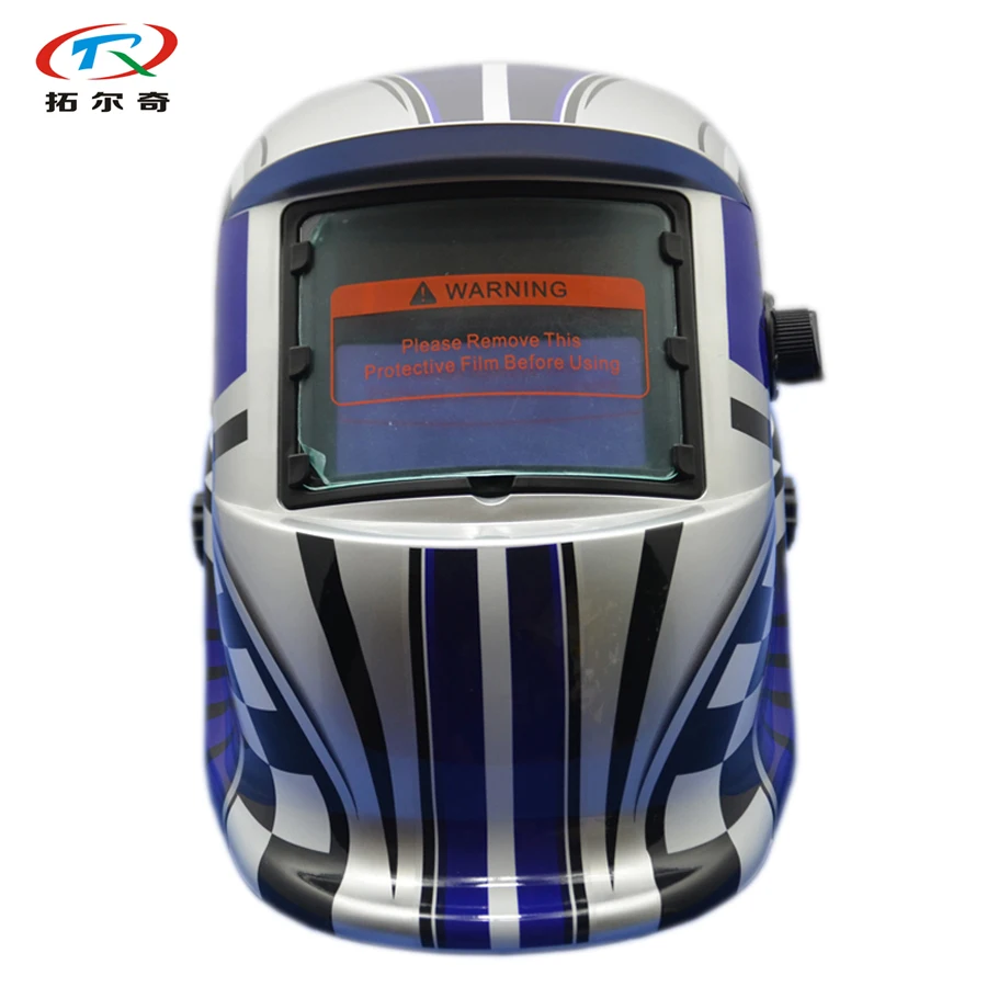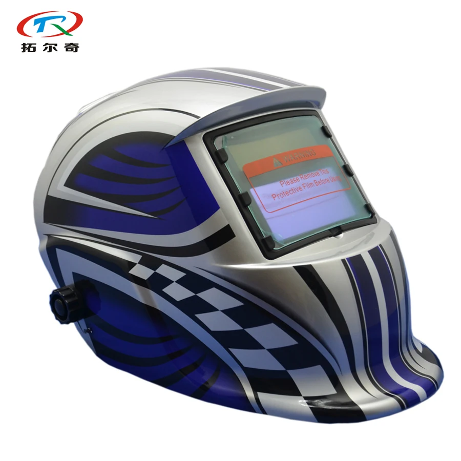 Review Top Auto Darkening Welding Helmet Silver blue Hot sales with gloves Solar and Inner Battery welding mas