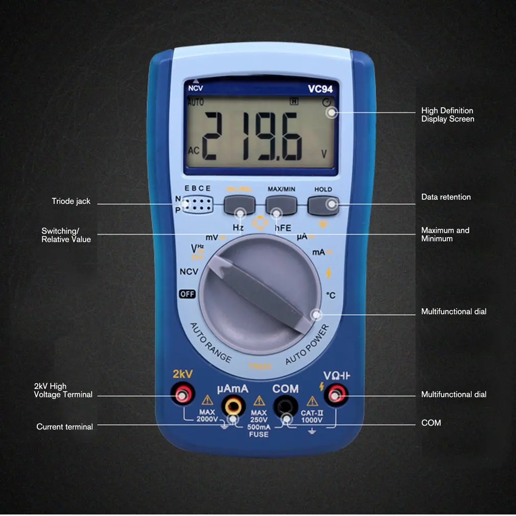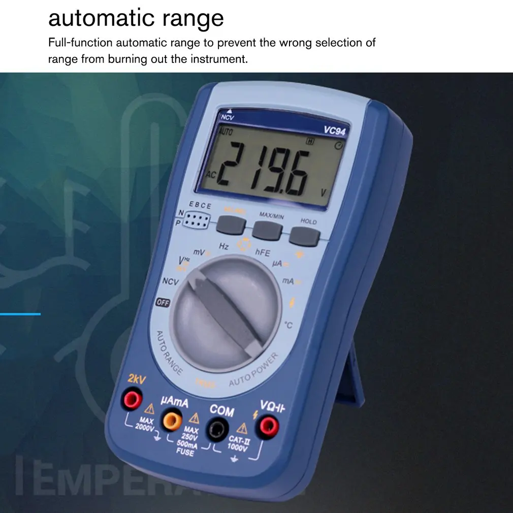 Digital Multimeter DC/AC Current Voltage T-RMS Auto Range NCV/Capacitor/ Frequency/Triode/ Diode/Te