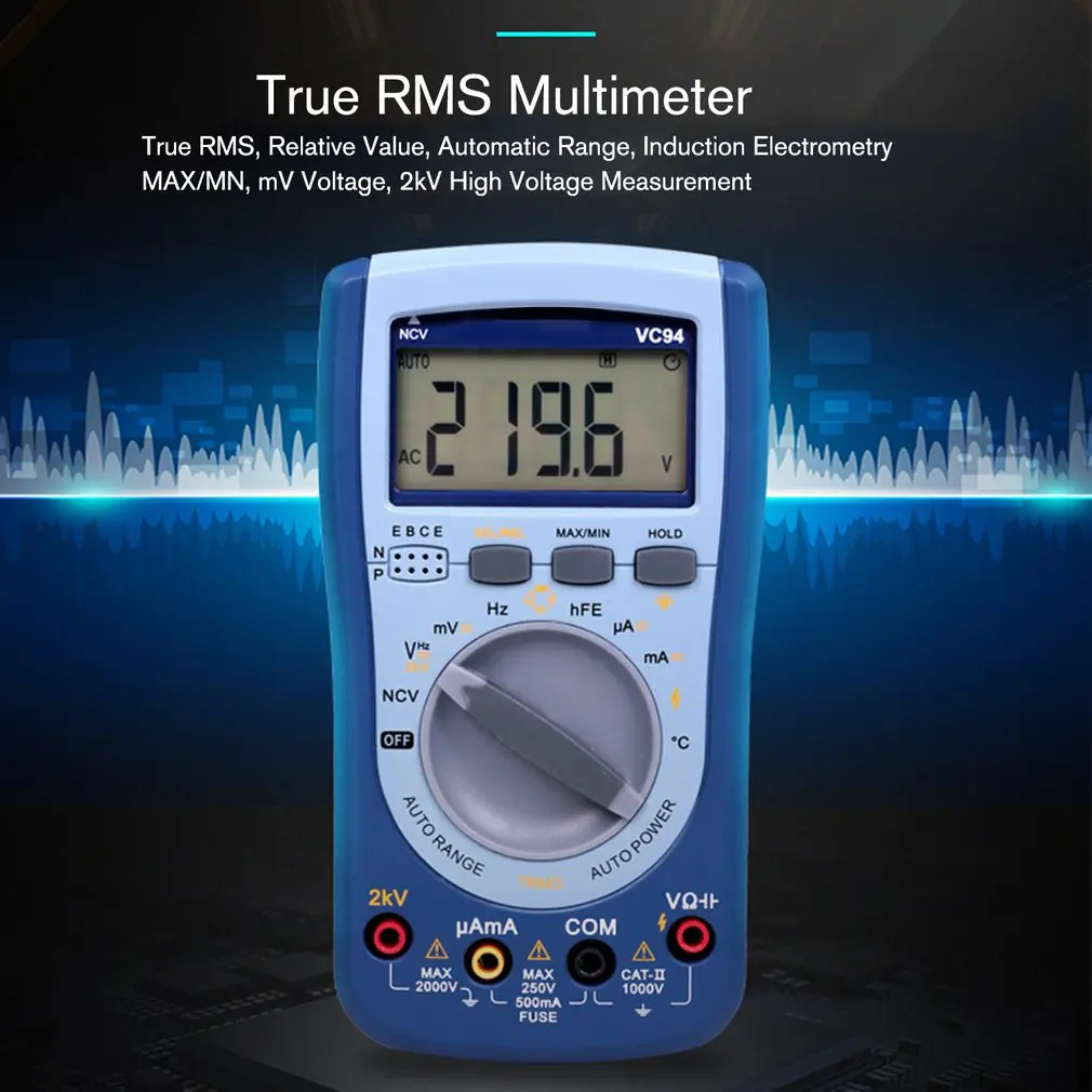 Digital Multimeter DC/AC Current Voltage T-RMS Auto Range NCV/Capacitor/ Frequency/Triode/ Diode/Te