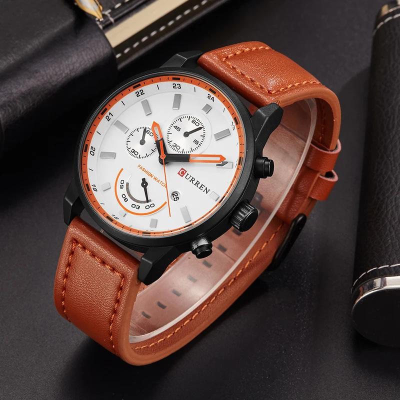 Men's Watch CURREN Hot Sale Analog Sports Wristwatch Display Date Men's Quartz Watch Leather Strap
